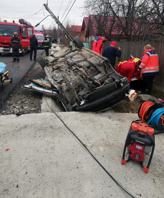 Un echipaj de medici încearcă să îl resusciteze pe un buzoian care s-a răsturnat cu mașina pe DJ 203K, în localitatea Cernătești.