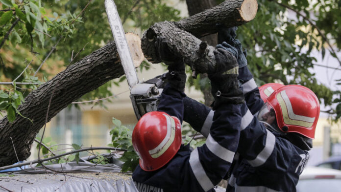 De asemenea, în jurul orei 8:30, un echipaj din cadrul Detașamentului de Pompieri Buzău a intervenit pentru îndepărtarea unui copac căzut pe carosabil, pe strada Timotei Cipariu, în municipiul Buzău.