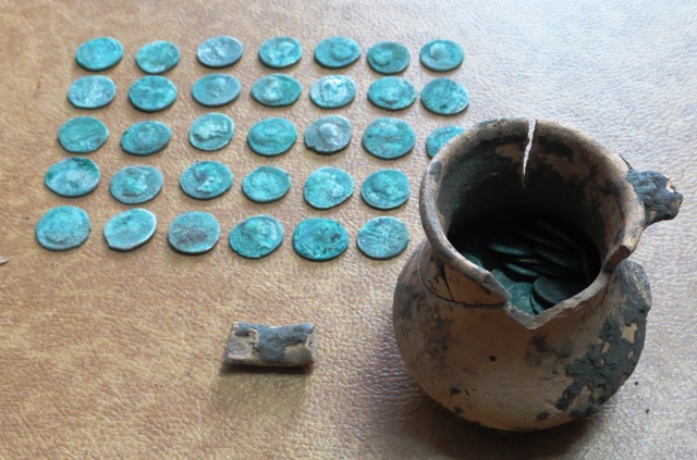 Este vorba despre 2517 monede, descoperite în week-end de un grup de 7 căutători de comori, în pădurea Spătaru. Cei șapte au plecat prin pădure cu detectoarele de metale și au dat, întâmplător, peste ce aveau să afle că este cel mai numeros tezaur monetar descoperit până acum la Buzău. Monedele, de două dimensiuni, erau ascunse în pământ într-un vas de ceramică, pe care descoperitorii l-au adus mai întâi la Direcția de Cultură, așa cu, prevede legislația în vigoare.