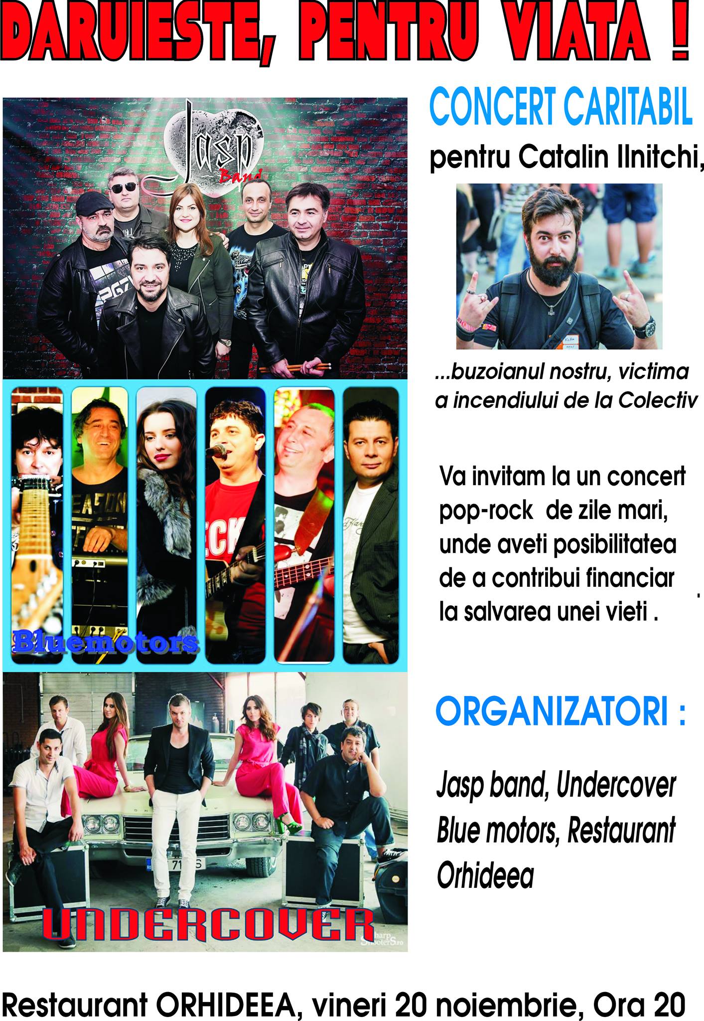 Evenimentul va avea loc vineri, 20 noiembrie, în Club Orhideea din Buzău iar banii care vor fi strânși atunci vor fi donați pentru buzoianul Cătălin Ilnițchi, rănit în Colectiv.