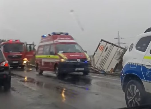 Din primele date de la fața locului, ar fi vorba despre un camion răsturnat de pe pasarela Nehoiu. Din fericire, evenimentul s-a soldat doar cu pagube materiale.