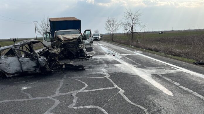 Din primele date, pare că a avut loc un impact frontal între un autocamion și un autoturism, apoi mașina a luat foc.