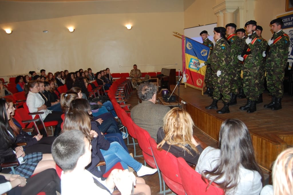 Astăzi ofiţerii au descins la două licee buzoiene – „Spiru Haret” şi „Alexandru Marghiloman”- unde au prezentat tinerilor aspecte ale vieţii cazone , misiunile pe care aceştia le desfăşoară în diferite teatre de luptă de pe tot cuprinsul mapamondului dar şi oferta educaţională oferită de armată.