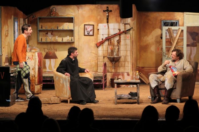 Peste 400 de buzoieni au mers, luni seară, să vadă spectacolul pus în scenă de Cristi Juncu şi următorii actori în distribuţie: Florin Piersic Jr., Vlad Zamfirescu, Andi Vasluianu şi Corina Dragomir. Producţia Teatrului Nottara se bucură de aprecierea criticilor de specialitate şi are la bază textul lui Martin Mc. Donach, premiat anul trecut la Golden Globes pentru cel mai bun scenariu pentru filmul „Three Billboards Outside Ebbing, Missouri”.