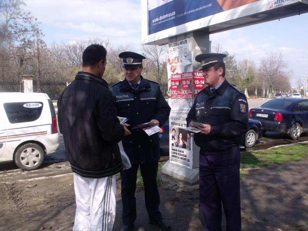 S-a întâmplat în cadrul unei acțiuni defășurată joi în municipiul Buzău, acţiune ce a avut drept scop prevenirea accidentelor de circulaţie cu victime din rândul pietonilor. Poliţişti din cadrul IPJ Buzău – Compartimentul Analiza şi Prevenirea Criminalităţii şi Birourilor Rutier şi Proximitate de la Poliţia municipiului Buzău au descins în zona trecerilor de pietoni, dar şi a parcurilor „Crâng” şi „Tineretului”, prin activităţile desfăşurate urmărindu-se conştientizarea pietonilor asupra importanţei respectării regulilor la traversarea drumurilor publice. În atenţia poliţiştilor s-au aflat şi conducătorii auto, în special cei tentaţi să nu acorde prioritate de trecere pietonilor angajaţi regulamentar în traversare.