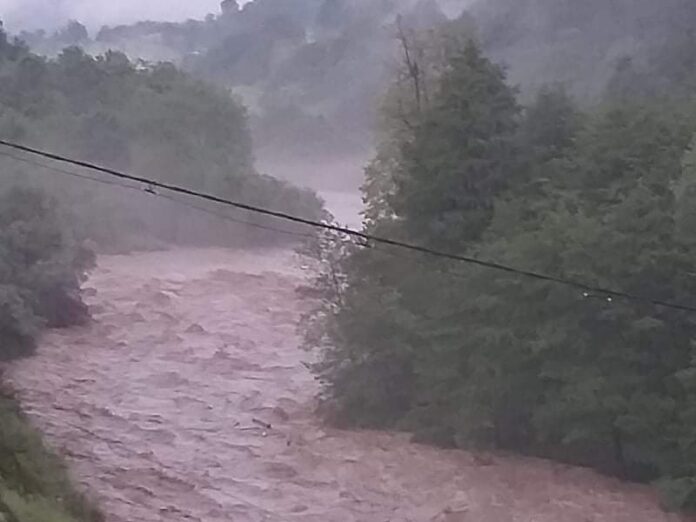 În urma precipitațiilor abundente din ultimele ore, apele învolburate au dat alarma pentru autorități, care se așteaptă la producerea unor viituri pe râul Buzău sau pe cursurilor altor ape din zona de nord a județului, așa cum se poate observa și în fotografia surprinsă de un localnic, în zona Gura Teghii, unde apa ar fi depășit cu mult cotele de inundații.