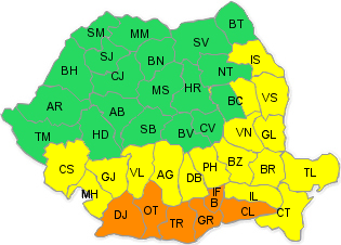 Administraţia Naţională de Meteorologie a emis, marţi, o avertizare cod portocaliu de caniculă şi disconfort termic accentuat valabilă pentru Capitală şi şase judeţe din sudul ţării. Codul este valabil în zilele de 29 şi 30 iulie. Potrivit ANM, miercuri, 29 iulie, şi joi, 30 iulie, valul de căldură se va intensifica în regiunile sudice şi estice, unde va fi instituit un COD GALBEN. În sudul Banatului, Oltenia, Muntenia, centrul şi sudul Moldovei şi în partea continentală a Dobrogei, temperaturile maxime se vor situa frecvent între 35 şi 37 de grade, iar indicele temperatură-umezeală (ITU) va depăşi pragul critic de 80 de unităţi.