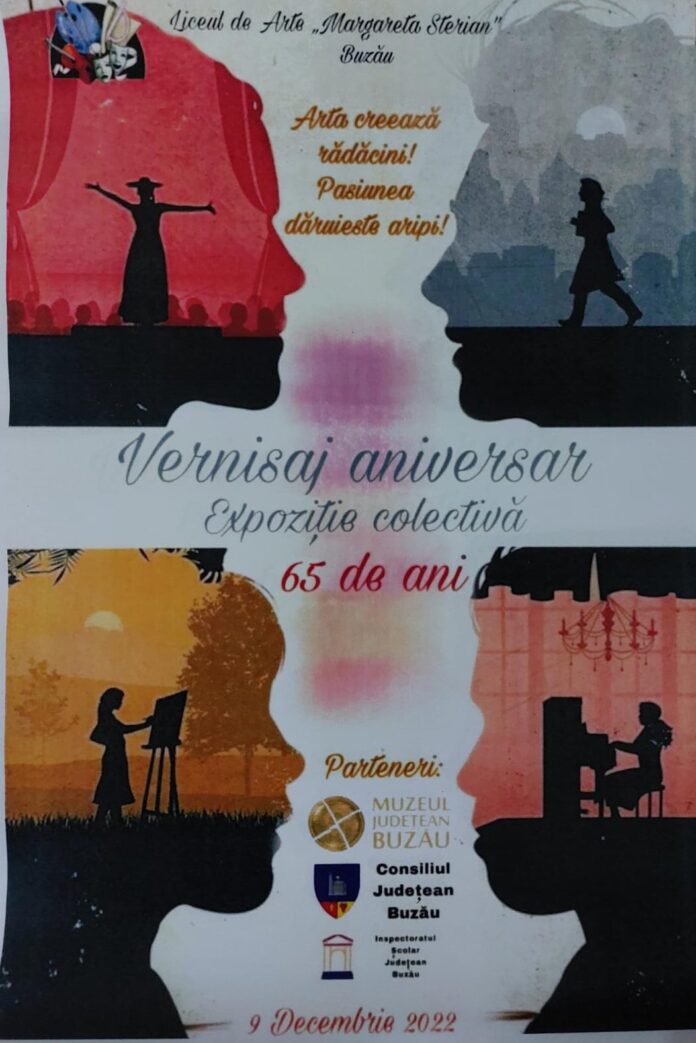 „Proiectul expozițional reunește lucrări de pictură, sculptură, grafică și artă textilă, semnate de elevi, cadre didactice și profesori pensionari ai Liceului de Arte „Margareta Sterian”. Prestigioasa instituție de învățământ celebrează, pe data de 9 decembrie 2022, 65 de ani de la deschidere – 65 de ani de artă, muzică de calitate, pasiune și culoare, ce au animat peisajul cultural buzoian.