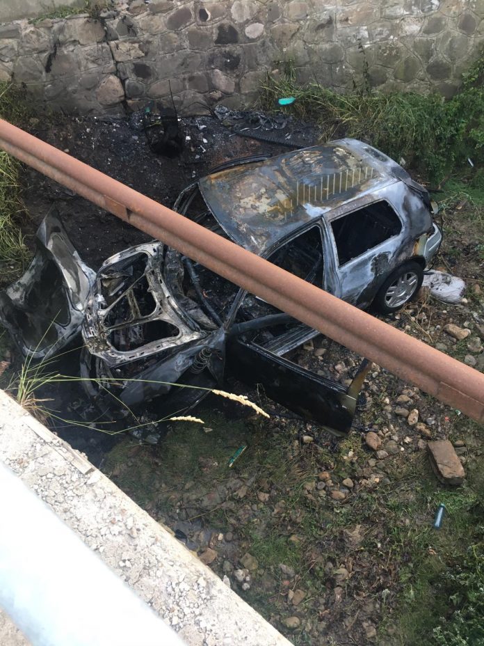 În urma accidentului, autoturismul a luat foc și a fost distrus în totalitate.