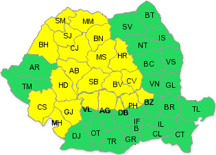 Aproape toată jumătatea de nord a judeţului se va afla de astăzi după amiază până miercuri dimineaţă sub atenţionare cod galben de ploi însemnate cantitativ, descărcări electrice, intensificări ale vântului. În intervalul 17 septembrie, ora 15 – 18 septembrie, ora 03 instabilitatea atmosferică se va accentua treptat în Crişana, Maramureş, Transilvania, în dealurile Banatului şi ale Olteniei, precum şi în zona montană. Se vor semnala averse, ce vor avea şi caracter torenţial, descărcări electrice şi vor fi condiţii de grindină. Cantităţile de apă vor depăşi pe arii extinse 20…25 l/mp şi izolat 50 l/mp. Vântul se va intensifica temporar.