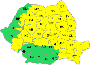 În intervalul 24 mai, ora 15 – 25 mai, ora 21, vor fi perioade în care instabilitatea atmosferică va fi accentuată în cea mai mare parte a ţării. Vor fi averse, descărcări electrice, intensificări ale vântului ce vor lua aspect de vijelie şi pe arii restrânse grindină. În Moldova, Dobrogea, Transilvania, Maramureş, nordul şi estul Munteniei, precum şi în zona de munte, cantităţile de apă vor depăşi local 20…25 l/mp şi izolat, cu precădere în Carpaţii Orientali, 50…70 l/mp.