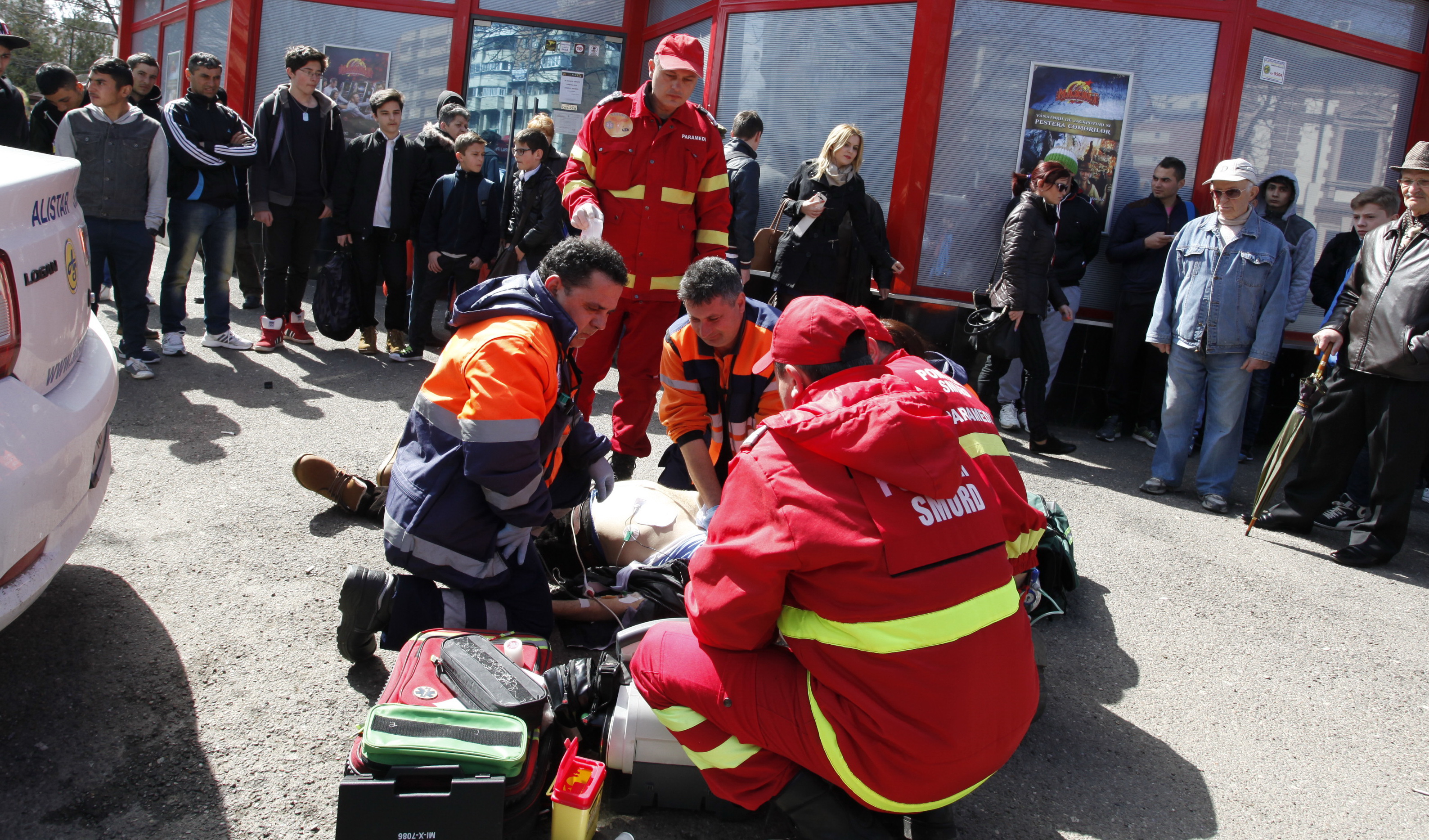 La fața locului au ajusn paramedicii de la SMURD și un echipaj de la Serviciul Județean de Ambulanță, care-l resuscitează pe bărbat, în încercarea de a-l readuce la viață. SE pare că bărbatul este deja în stop cardio-respirator.