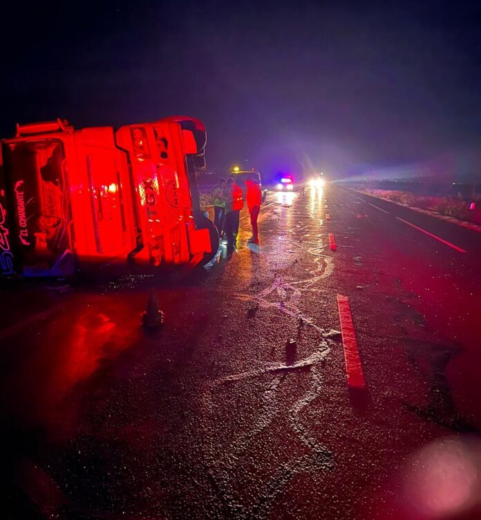 În această seară, traficul a fost restricționat pe DN2E85, pe sensul Buzău către București, la ieșire din Limpezis spre Urziceni, după ce un camion de mare tonaj s-a răsturnat, anunță Poliția.