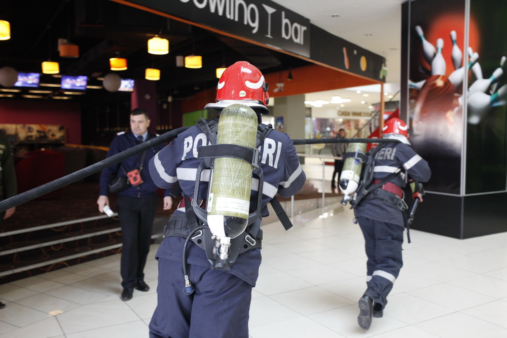 Un exercițiu de simulare a unui incendiu a pus pe jar cumpărătorii aflați la orele dimineții în centrul comercial Aurora, dar și pe participanții la trafic și locatarii din vecinătatea complexului comercial. Pompierii au intervenit cu patru autospeciale pentru lichidarea unui incendiu închipuit, pornit de la subsolul clădirii.
