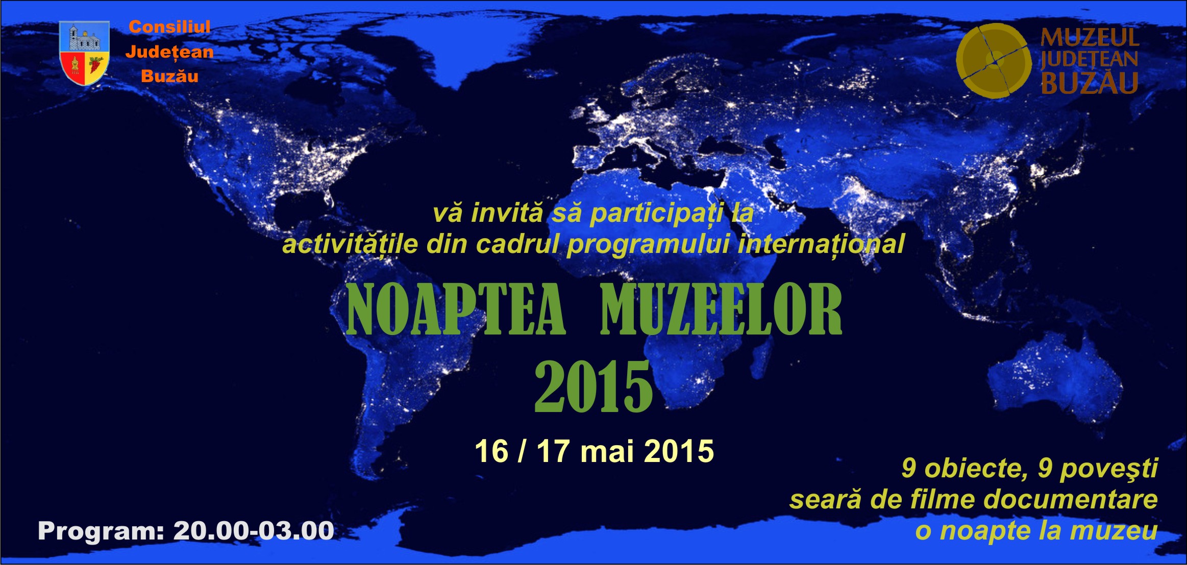 Cu ocazia evenimentului internaţional Noaptea Muzeelor, Muzeul Judeţean Buzău, instituţie de cultură subordonată Consiliului Judeţean Buzău, propune spre vizitare expoziţia temporară 9 obiecte, 9 poveşti, care se doreşte o avanpremieră a expoziţiei de bază a muzeului.