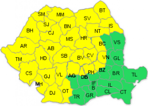 Nord vestul judeţului Buzău se află sub cod galben începând de astăzi de la ora 10 şi până mâine seară la ora 21. Agenţia Naţională de Meteorologie a emis la ora 10 o atenţionare cod galben de fenomene extreme. Aceasta ănseamnă că în intervalul menţionat ne aşteptăm la ploi torenţiale, descărcări electrice, intensificări ale vântului, grindină.Potrivit meteorologilor cantităţile de apă vor depăşi local 30 l/mp şi izolat 70 l /mp.