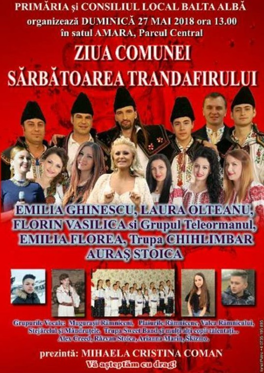 Primăria și Consiliul Local Balta Albă organizează duminică, 27 mai, de la ora 13:00, în Parcul Central din satul Amara „Sărbătoarea Trandafirului”.