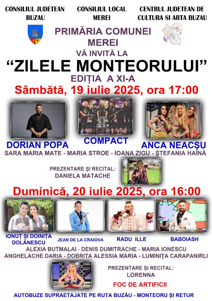 Evenimentul se va desfășura în zilele de 19 și 20 iulie, în organizarea Consiliului Județean, a Primăriei și Consiliului Local Merei și a Centrului Județean de Cultură și Artă Buzău.