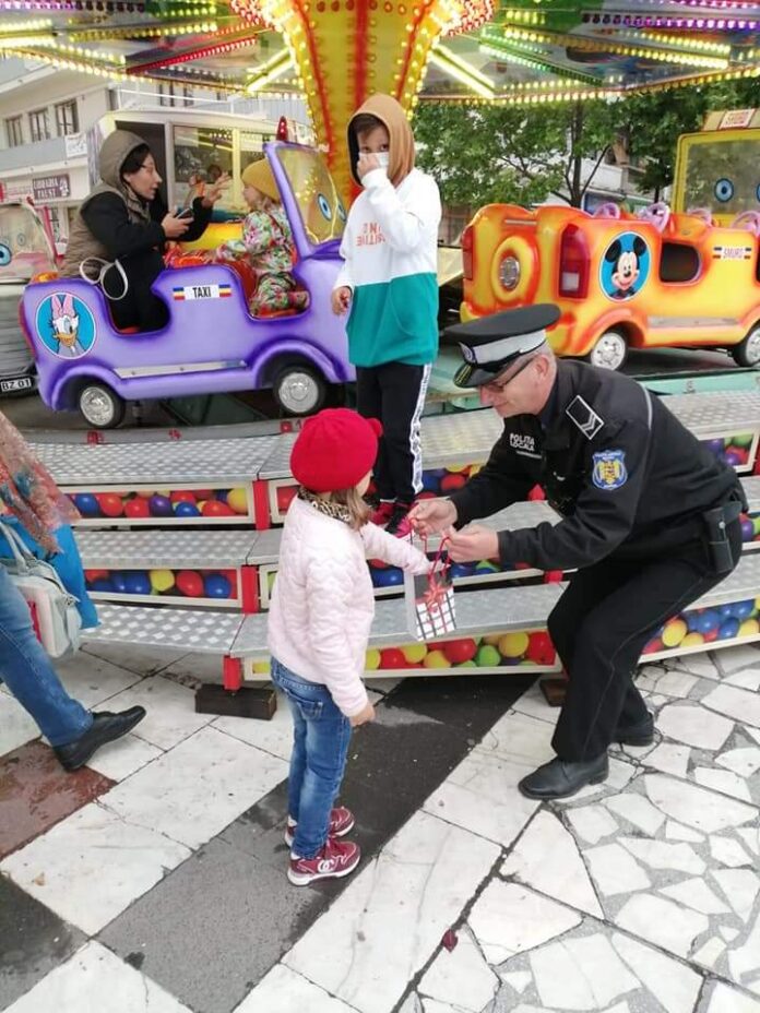 „Politistii locali ce asigură ordinea publică în zona parcului de distracție amenajat în Piata Dacia au aplicat „sancțiuni ” dulci copiilor ce se aflau în zonă.