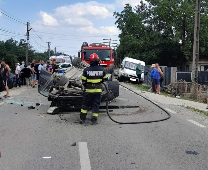 Trafic blocat în această după-amiază, pe DJ 203 K, în Mătești, după ce o mașină s-a răsturnat și a rămas pe mijlocul drumului.