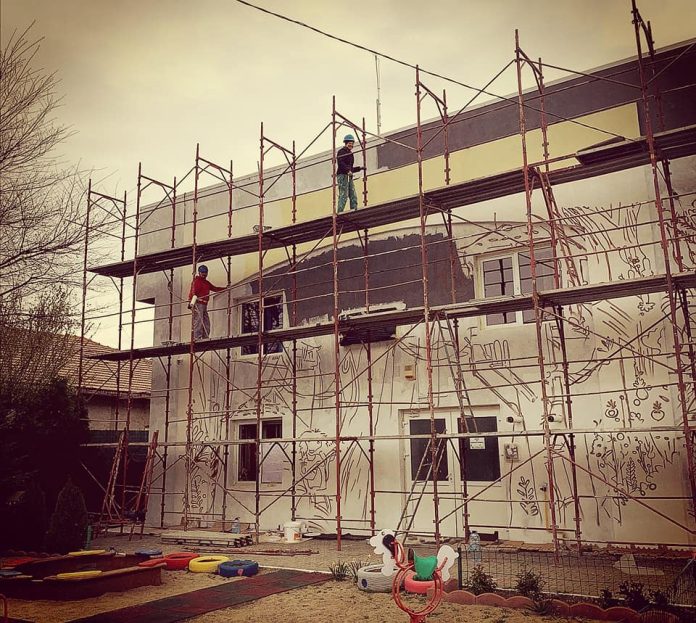Zilele trecute au început lucrările pentru schimbare fațadei clădirii în care funcționează Grădinița nr. 6, de pe strada Alexandru Marghiloman.