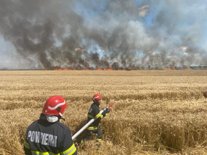 ,,Au ars aproximativ 50 hectare cultura grâu, orz si vegetație uscată.” – ISU Buzău