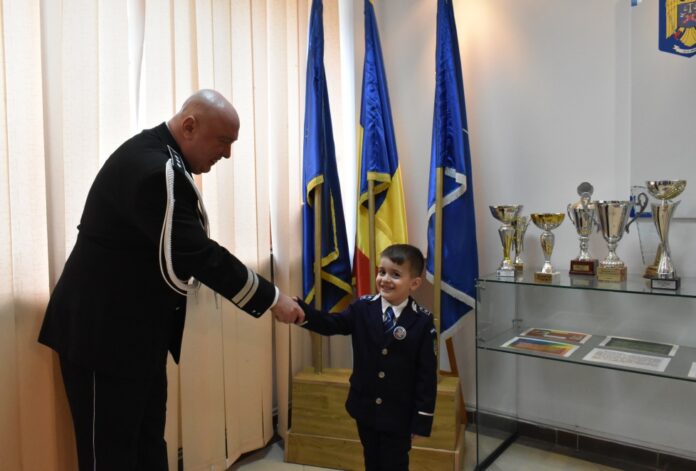 Șeful Poliției buzoiene, comisarul-șef Laurențiu Pantazi, a transmis, astăzi, mesajul său cu ocazia zilei de 1 Decembrie, după ce a fost vizitat de mai mulți copii, unul dintre micuții oaspeți fiind chiar îmbrăcat în uniformă de polițist.