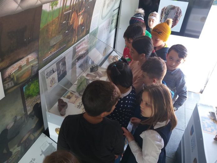 Elevii s-au bucurat de vizita în microbuzul special amenajat de specialiștii Muzeului Județean, unde au admirat o miniexpoziție.