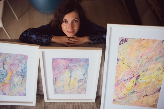 Prin succesiuni de linii, puncte și tușe vibrante, artista creează ritmuri vizuale ce transmit mișcare și energie. Folosește predominant acuarela, tehnică ce permite culorilor să se îmbine și să evolueze organic, iar intervențiile cu creioane colorate adaugă accente de precizie și control. Deși la prima vedere compozițiile pot părea jucăușe, dincolo de suprafața lor se întrezăresc emoții puternice și reflecții profunde.