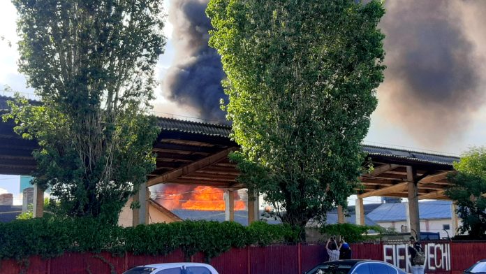 Un puternic incendiu, cu degajare mare de fum, a izbucnit în urmă cu câteva minute, la un depozit de materiale plastice din Zona Industrială a orașului Buzău.