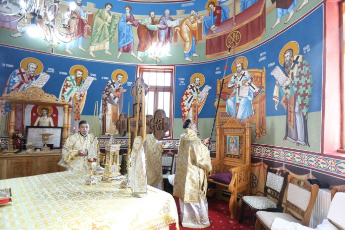 După rânduiala de sfințire a bisericii, Înaltpreasfințitul Părinte Arhiepiscop Ciprian a săvârșit Sfânta Liturghie, împreună cu un sobor de opt preoți și doi diaconi. Răspunsurile la strană au fost oferite de Corul Psaltic Misionar „Sfântul Roman Melodul” al Eparhiei.