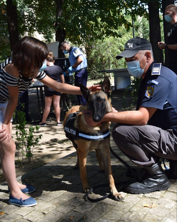 Agentul șef principal – conductor canin Ilie Cosma le-a prezentat copiilor câinele polițist Arca. Inspectorul Andrei Ilinca, din cadrul serviciului Criminalistică, le-a explicat pas cu pas despre procesul de amprentare, cei mici fiind pe rând inspectori criminaliști.” , au precizat oficialii Centrului Cultural.