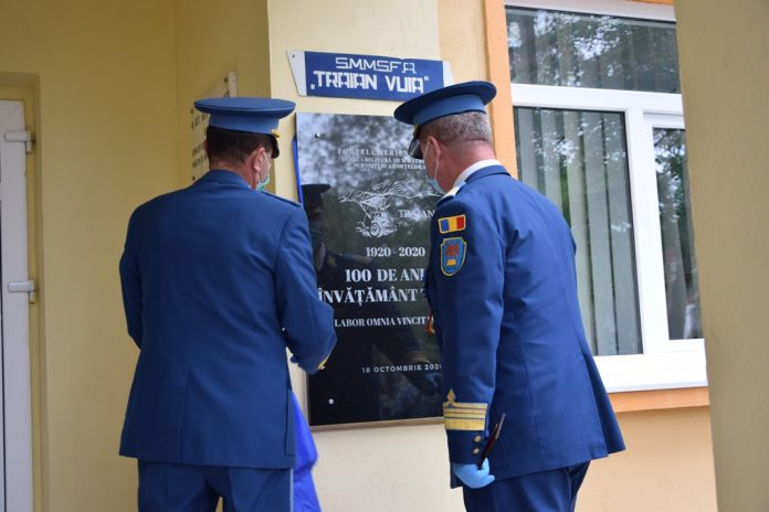 Ceremonia militară prilejuită de aniversarea a 100 de ani de existență a învățământului tehnic în forțele aeriene a avut loc, astăzi, la sediul Școlii Militare de Maiștri Militari și Subofițeri a Forțelor Aeriene „Traian Vuia”.
