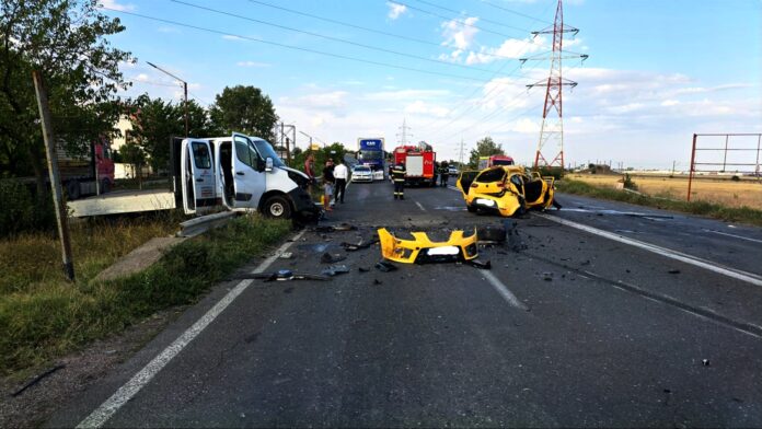 Mai multe persoane au fost rănite în urma unui puternic impact între un autoturism și o dubiță. În eveniment a mai fost implicat un al treilea autovehicul,