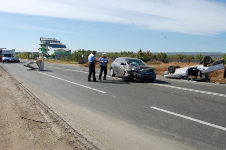 În urma impactului deosebit de violent, maşina lovită în spate s-a răsturnat în afara părţii carosabile, iar şoferul şi pasagera din drepata care era însărcinată au fost răniţi şi au fost transportaţi de urgenţă la spital.