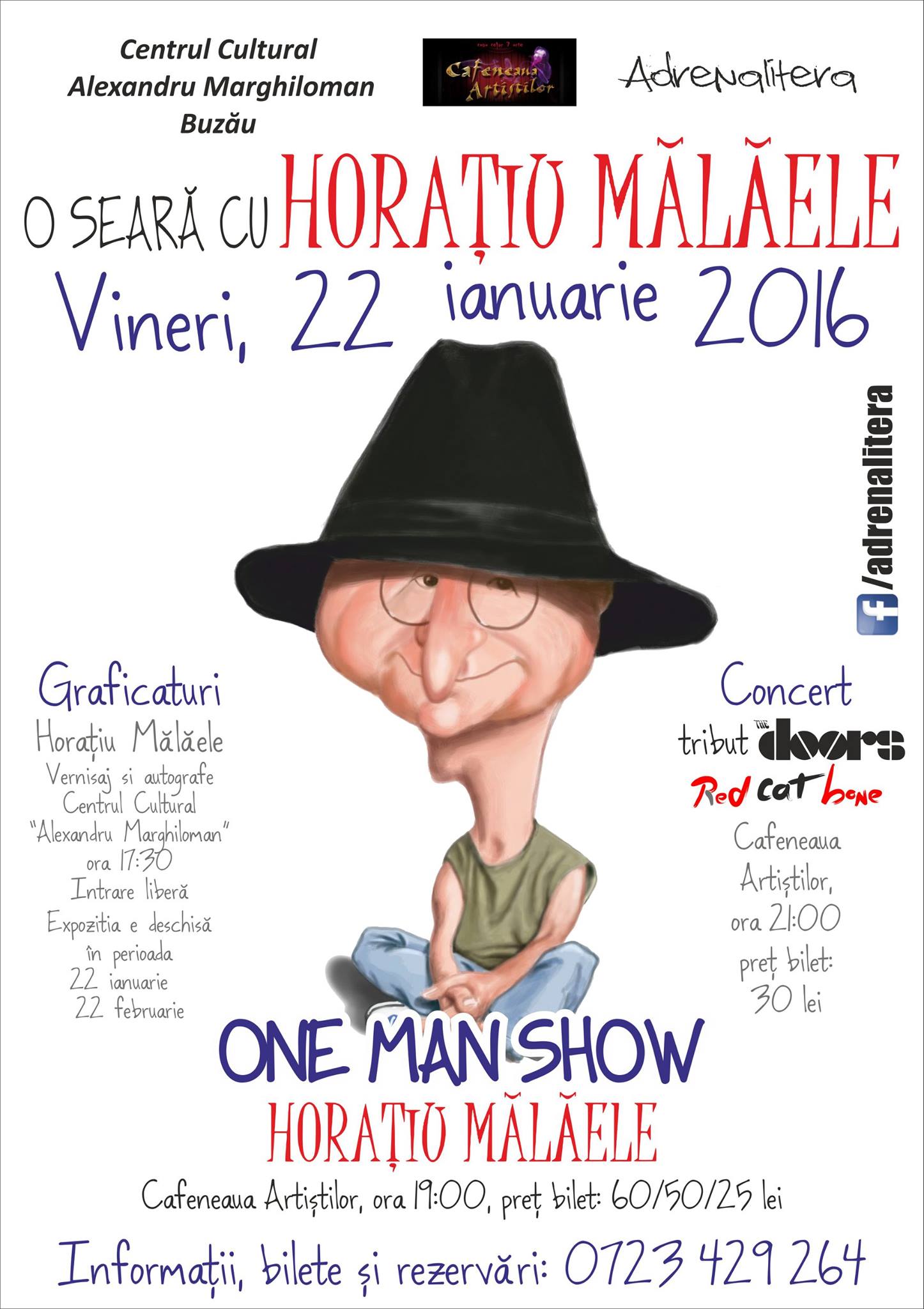 Spectacolul va avea loc, vineri, când Horațiu Mălăele va deschide expoziția de grafică și caricatură intitulată GRAFICATURI, expoziție ce va avea loc la Centrul Cultural „Alexandru Marghiloman“ și pe care buzoienii o vor putea admira timp de o lună. Evenimentul va debuta la ora 17.30.