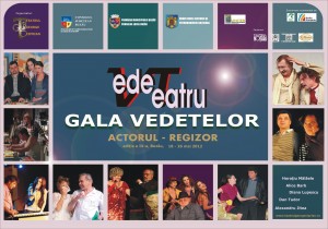 Teatrul “George Ciprian” din Buzău, cu sprijinul Consiliului Judeţean Buzău, Ministerului Culturii şi Patrimoniului Naţional, Primăriei Municipiului Buzău şi al UNITER, organizează, în acest an, cea de-a IX-a ediţie a festivalului buzoian de teatru, care, din 2007, se numeşte Gala Vedetelor – VEDETEATRU, manifestare teatrală anuală dedicată vedetelor. Manifestarea se va desfăşura în perioada 18 – 26 mai 2012 şi va avea în centrul atenţiei vedeta autentică în relaţie directă cu publicul. Ediţia din acest an va fi dedicată actorului-regizor. Pentru prima dată, Gala Vedetelor aparţine judeţului şi nu doar municipiului Buzău. Festivalul se deschide de două ori, pe 18 mai, la Casa de Cultură din Râmnicu Sărat, cu spectacolul Cineva ca tine de Cristina Florea (Teatrul „George Ciprian”), şi, pe 19 mai, la Buzău, la Sala de Şedinţe Consiliului Judeţean, cu Blifat de Gabriel Pintilei (Teatrul Odeon din Bucureşti). Gala Vedetelor se constituie într-o ofertă culturală complexă, modernă, inedită pe piaţa festivalieră din România, şi are, în cadrul secţiunii oficiale din acest an, 9 spectacole (două în afara concursului, cinci în concurs şi o seară de gală inedită: un Concert extraordinar Marius Mihalache). Pentru că, în acest an, teatrul se află în plin proces de reabilitare, reprezentaţiile din secţiunea oficială se vor prezenta la Sala de Şedinţe a Consiliului Judeţean. De asemenea, în foaierul Sălii de şedinţe se vor organiza două expoziţii, una de fotografie de teatru (autor: Ion Tăbăcaru) şi una de păpuşi şi marionete, realizată cu sprijinul Teatrului Ţăndărică.
