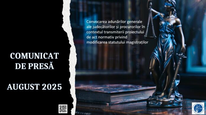 La data de 21.08.2025, Secțiile Consiliului Superior al Magistraturii au hotărât convocarea adunărilor generale ale judecătorilor și procurorilor pentru intervalul 26-27.08.2025, în vederea exprimării unui punct de vedere referitor la proiectul de act normativ privind modificarea pensiilor de serviciu și la măsurile necesare în vederea protejării statutului magistraților și a independenței justiției.