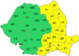 Potrivit acestei avertizăi, instabilitatea atmosferică se va accentua treptat începând din sud-estul extrem al ţării şi va cuprinde jumătatea estică a teritoriului. Se vor semnala averse, descărcări electrice, intensificări ale vântului ce vor lua trecător aspect de vijelie şi izolat căderi de grindină. Cantităţile de apă vor depăşi local 20…25 l/mp şi izolat 40 l/mp.