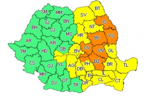 Zone afectate: județele Iași, Vaslui, Bacău, Vrancea, Buzău, Covasna și zona de munte a județelor Prahova și Brașov