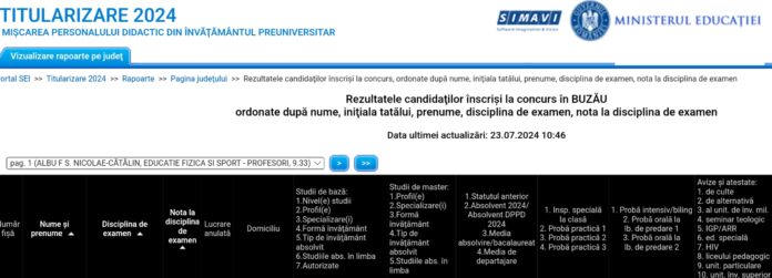 Rezultatele celor 335 candidați care au participat la concursul naţional pentru ocuparea posturilor didactice/catedrelor declarate vacante/rezervate în învățământul preuniversitar sunt următoarele: 135 candidați cu note peste 7 (șapte), iar procentul obținut este de 40,30 %; din care 25 candidați sunt absolvenți 2024; 121 candidați cu note între 5 (cinci) și 7 (șapte), iar procentul obținut este de 36,12%; din care 33 candidați sunt absolvenți 2024; 256 candidați au obținut note între 5 (cinci) și 9,70 (nouă 70%), înregistrându-se un procent de 76,42% și doar 79 de candidați au note sub 5 (cinci) având procentul de 23,58 %.” , au transmis reprezentanții Inspectoratului Școlar Județean Buzău.