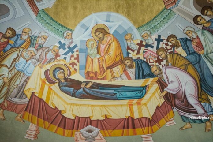 Adormirea Maicii Domnului este prăznuită pe 15 august. Despre această sărbătoare nu găsim informații în Sfintele Evanghelii, ci numai în Tradiția Bisericii. Potrivit acestei Traditii, Maica Domnului a fost înștiințată printr-un înger de mutarea ei din această viață: „Acestea zice Fiul tău: Vremea este a muta pe maica Mea la Mine. Nu te teme de aceasta, ci primește cuvăntul cu bucurie, de vreme ce vii la viața cea nemuritoare“. După ce Fecioara Maria și-a cerut iertăciune de la toți, și-a dat duhul. Domnul Insuși S-a coborât din ceruri pentru a primi în mâinile Sale sufletul ei cel sfânt. Atunci s-au petrecut multe minuni: ochii orbilor și auzul surzilor s-au deschis, ologii și bolnavii s-au vindecat.