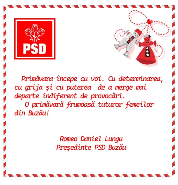 Mesajul șefului PSD Buzău, deputatul Romeo Lungu, de Mărțișor