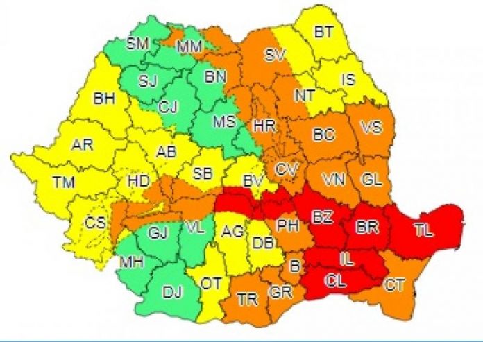 Primul cod roşu intră în vigoare miercuri, ora 18:00 şi va fi în vigoare până joi, ora 8.00.