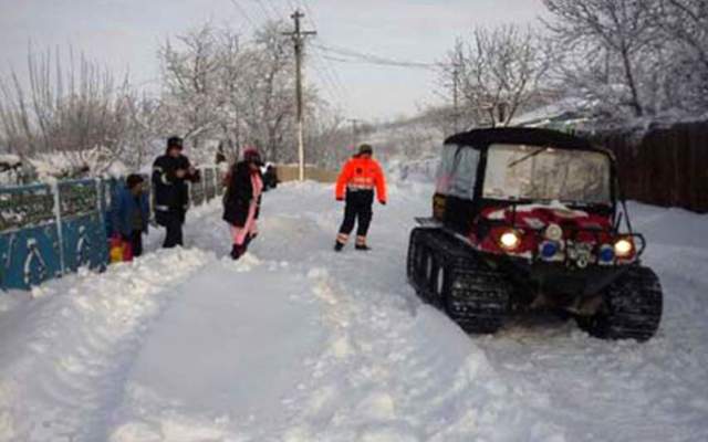 Din cauza drumului impracticabil, de pământ, acoperit cu zăpadă, s-a solicitat pentru sprijin un autovehicul șenilat special pentru astfel de situatii.