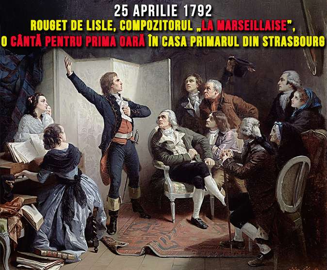 Actualul imn național al Franței, „La Marseillaise” a fost compus de Rouget de Lisle, la Strasbourg, în noaptea de 25 aprilie 1792, după declararea războiului cu Austria. Titlul inițial a fost „Chant de guerre pour l’armée du Rhin” („Cântecul de război al armatei de pe Rin”)