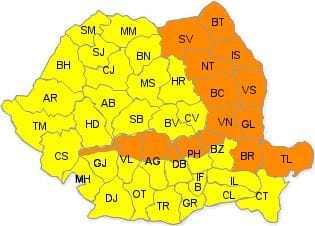 Meteorologii au emis în această dimineaţă o avertizare meteorologică de cod portocaliu de viscol pentru sudul Olteniei şi sud-vestul Munteniei. În aceste zone vântul va avea intensificări de peste 80-90 km/h. Judetele vizate sunt: Suceava, Botosani, Neamt, Iasi, Bacau, Vaslui, Vrancea, Galati, Braila, Tulcea si partial Buzau, Prahova, Dambovita, Arge, Valcea si Gorj. In Muntii Banatului si in jumatatea vestica a Carpatilor Meridionali va ninge, va fi viscol, iar vitezele la rafala vor depasi 100-120 km/h. În restul tarii este cod galben de vant cu viteze ce vor depăşi la rafală 55-60 km/h, iar în nord-vestul, nordul şi centrul ţării ninsorile vor fi viscolite. Avertizarea este in vigoare vineri de la ora 10 pana la ora 18.