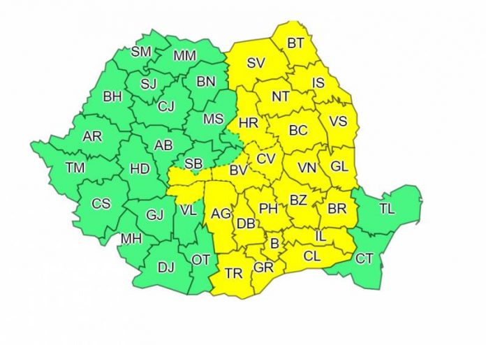 O nouă atenționare cod galben de fenomene extreme a fost emisă cu puțin timp în urmă de către meteorologi. Astfel, de miercuri 26 iulie, ora 20.00 și până joi, 27 iulie, ora 20.00 vom avea parte de instabilitate atmosferică accentuată și ploi însemnate cantitativ. Conform ANM, în intervalul menţionat, în Muntenia, Moldova și local în Carpații Orientali și Meridionali, vor fi perioade cu instabilitate atmosferică accentuată ce se va manifesta prin averse ce vor avea şi caracter torenţial, frecvente descărcări electrice, intensificări de scurtă durată ale vântului ce vor lua și aspect de vijelie și grindină. În intervale scurte de timp sau prin cumulare se vor înregistra cantităţi de apă ce vor depăşi 20…25 l/mp şi punctiform 50…60 l/mp. Astfel de fenomene se vor semnala în după-amiaza zilei de miercuri (26 iulie) şi în zona Carpaților Meridionali și a Munților Banatului, iar în Dobrogea, îndeosebi în a doua parte a zilei de joi (27 iulie) şi în cursul nopţii de joi spre vineri (27/28 iulie).
