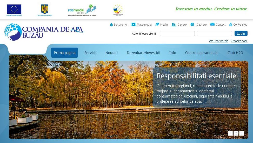 Incepand din luna noiembrie, Compania de Apa S.A. Buzau pune la dispozitia clientilor sai un nou website, care inglobeaza instrumente multiple, menite sa usureze accesul consumatorilor la informatii, sa imbunatateasca relatia dintre furnizor si clienti si sa ofere posibilitatea realizarii online a unor operatiuni care, pana acum, erau posibile doar prin deplasarea la sediul operatorului regional sau la centrele operationale din judet.