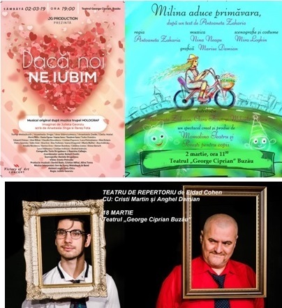 Luna martie debutează cu un spectacol pentru copii. Pe 2 martie, de la ora 11.00, Momolino împreună cu Milina și Zac vin să cânte, să joace și cu cei mici să danseze. ,,Milina aduce Primăvara”, un spectacol dedicat generației mici cu suflet mare, este un musical despre curaj, despre cât de hotărât este un copil atunci când face propriile alegeri. Tot pe 2 martie, dar de la ora 19.00 va avea loc spectacolul cu un musical pentru adolescenți. ,,Dacă noi ne iubim” – musical by Holograf este primul musical de tip generation fusion din România! Musicalul ,,Dacă noi ne iubim” creează un pod peste generații între fanii Holograf – majoritatea ajunși la vârsta adultă și adolescenții zilelor noastre. Cu un scenariu original și abordând un gen teatral în plină ascensiune în România – musical, fiind jucat exclusiv de tineri (mulți dintre ei premiați la cele mai importate competiții de voce, dans sau actorie), spectacolul emană energie, tinerețe si iubire. Cum poți impresiona mai bine o doamnă sau domnișoară dacă nu cu o invitație la teatru? Pe 8 martie este și un bun prilej de a invita persoana iubită la o piesă de teatru cu umor românesc de bună calitate, din rândul celor mai reușite momente de televiziune sau a celebrei serii a BD-urilor. Comedia ,,Zăpezile de Altădată”, scrisă de Dumitru Solomon, confirmă longevitatea râsului pe rețetă națională. Odată intrat în eterna poveste a certurilor între îndrăgostiți, fraternizând, după preferință, cu bărbatul pragmatic sau femeia care visează veșnic la romantism, singura provocare a spectatorului este să reziste cu sobrietate replicilor spumoase. Iar dacă la această noapte de pomină în doi se adaugă și prezența insistentă a unui administrator de bloc insomniac, evenimentele în cascadă surprind până la lăsarea cortinei.